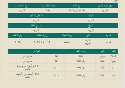 - النوع: أرض سكنية