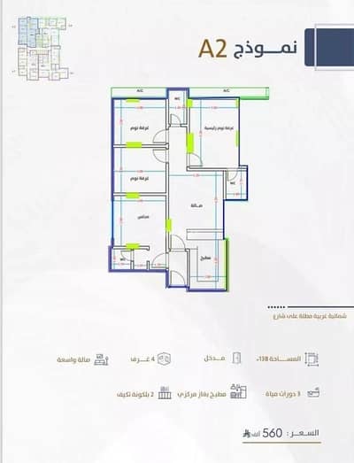 أو شقة أوسع بإطلالة شمالية على الشارع (نموذج C5) بسعر 420,000 .