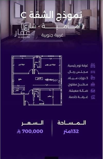 شقة تحتوي على 3 غرف نوم للبيع في الزهراء