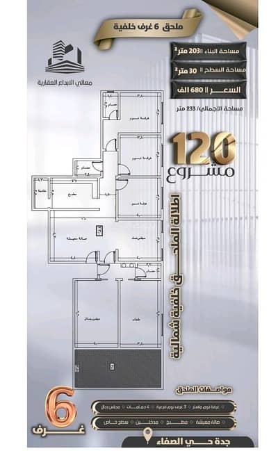 ملحق 6 غرف بحي الصفا مساحة 233م السعر 680 الف كاش