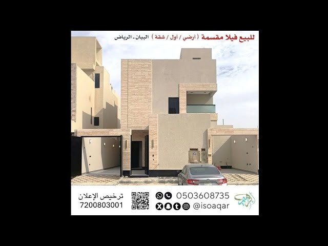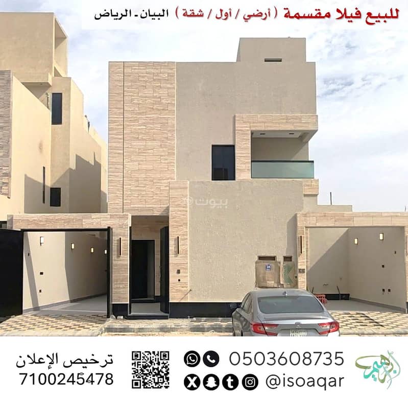 للبيع فيلا مقسمة ( أرضي / أول / شقة ) - حي البيان بالرياض