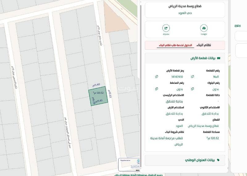 يتم جلب الموقع والتحقق منه بواسطة الهيئة العامة للعقاروصف موقع العقار حسب الصك:N/A