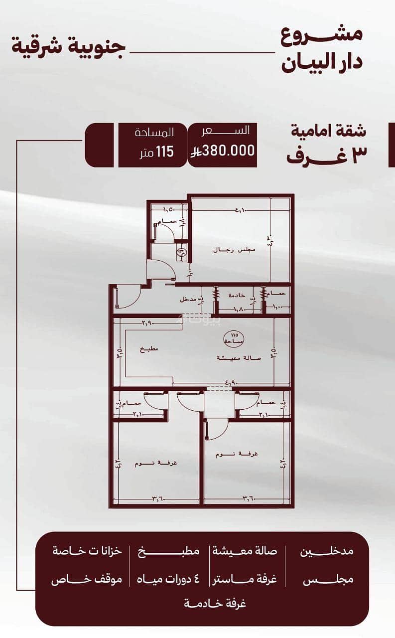 هذه الشقة غير مفروشة، مما يمنحك المرونة لتخصيص مساحة معيشتك وفقًا لذوقك وأسلوبك. تم إدراج العقار للبيع بسعر تنافسي يبلغ 380,000 ريال سعودي، مما يجعله خيارًا جذابًا للمشترين الذين يبحثون عن قيمة.