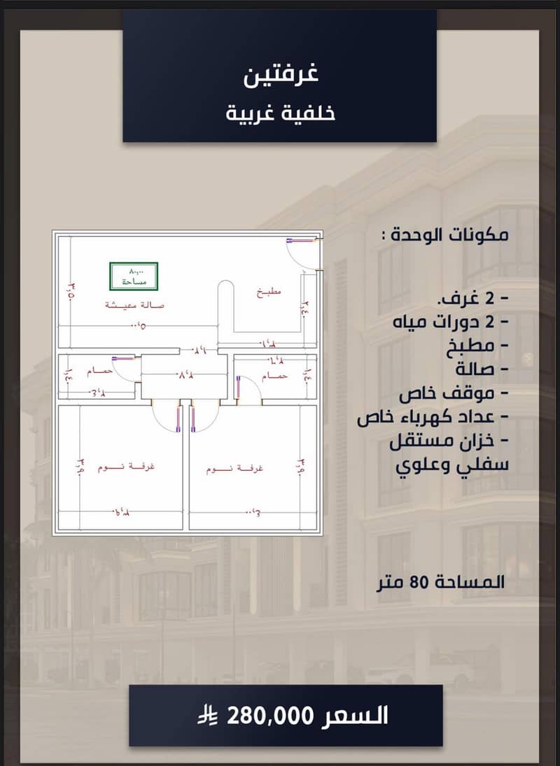 غرفتين اماميه بمساحة ٨٠م بسعر ٢٩٩ الف فقط