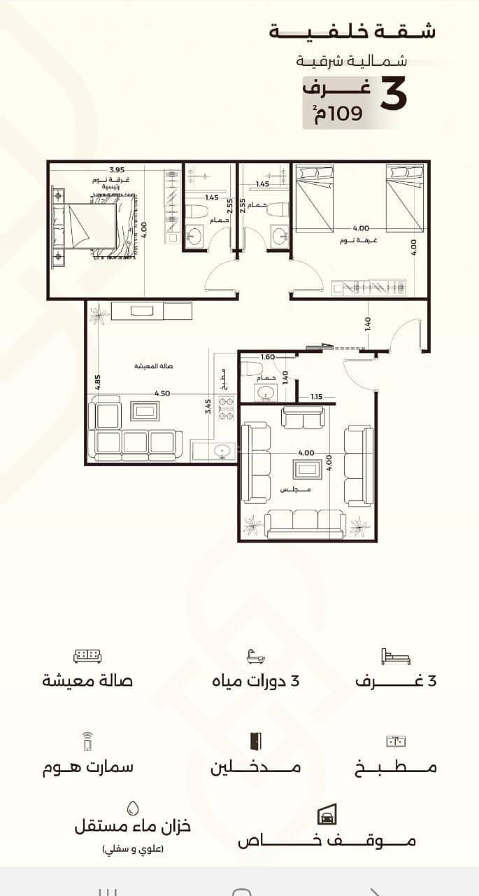 ٣غرف بمساحه ١٠٩م بسعر ٤٥٩ الف
