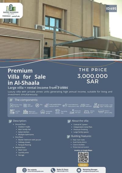 فيلا فاخرة مع 3 شقق للبيع في حي الشعلة – الدمام