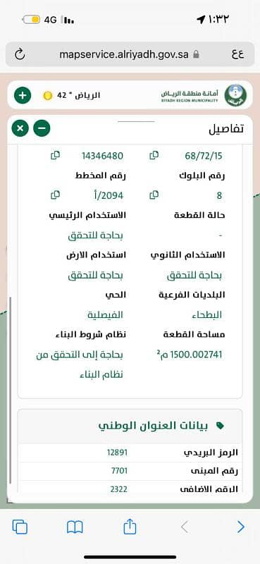يتم جلب الموقع والتحقق منه بواسطة الهيئة العامة للعقاروصف موقع العقار حسب الصك:N/A