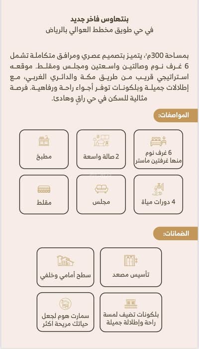 اكتشف هذا الطابق السكني المكون من 6 غرف نوم والذي يقع في حي طويق الهادئ. هذا العقار مثالي للعائلات التي تبحث عن مساحة واسعة وراحة، وهو مناسب لأولئك الذين يتطلعون لشراء منزل أحلامهم.
