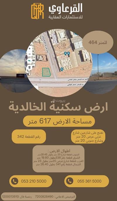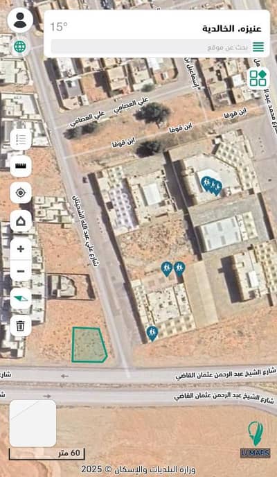للبيع ارض سكنية في جنوب مدينة عنيزة حي الخالدية بمساحة 617م على شارعين