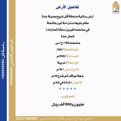 فرصة مميزة لامتلاك أرض سكنية في أحد أحياء شمال جدة حي المنارات