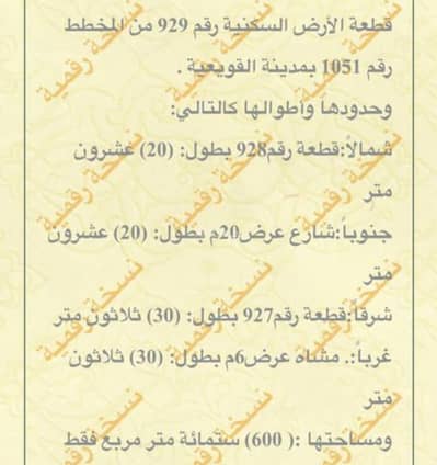 يتم جلب الموقع والتحقق منه بواسطة الهيئة العامة للعقاروصف موقع العقار حسب الصك:قطعة الأرض السكنية رقم 929 من المخطط رقم 1051 بمدينة القويعية .