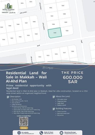 أرض سكنية للبيع في مكة المكرمة – مخطط ولي العهد