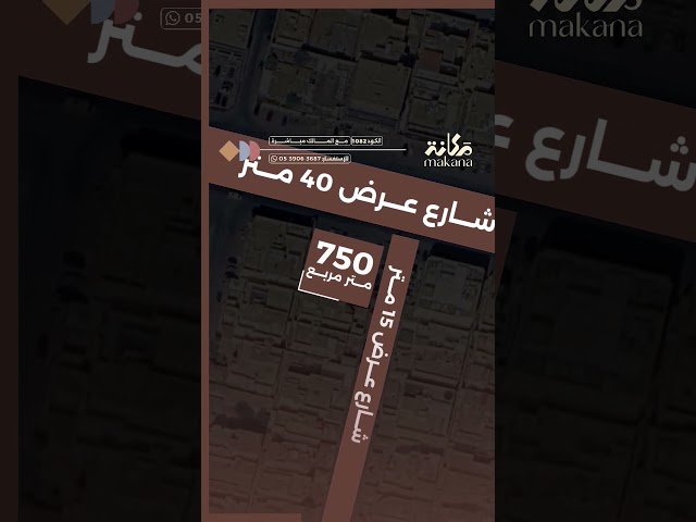 زاوية شارعين عرض 40م شمالاً و 15م شرقاً