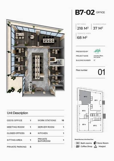 مكتب تنفيذي فاخر للإيجار في مشروع تاون سنتر بحي العارض – الرياض