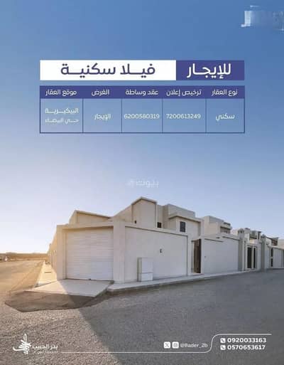 52,000 سنوياًفیلا75المساحة:556 م2فيلا للإيجار في شارع البيضاء 50, حي البيضاء, مدينة البكيريه, منطقة القصيمشارع البيضاء 50، البيضاء، البكيرية الإيميل اتصال