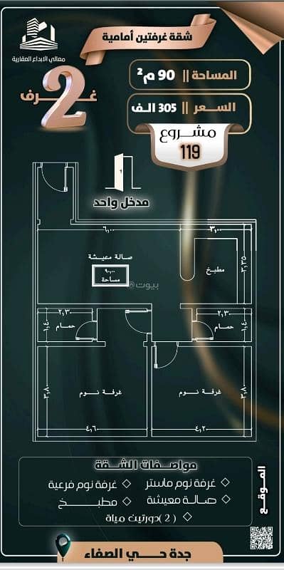 679,000شقة53المساحة:128 م2شقة للبيع في الصفاءشارع حصين ابن يعمر، الصفا، شمال جدة، جدة الإيميل اتصال