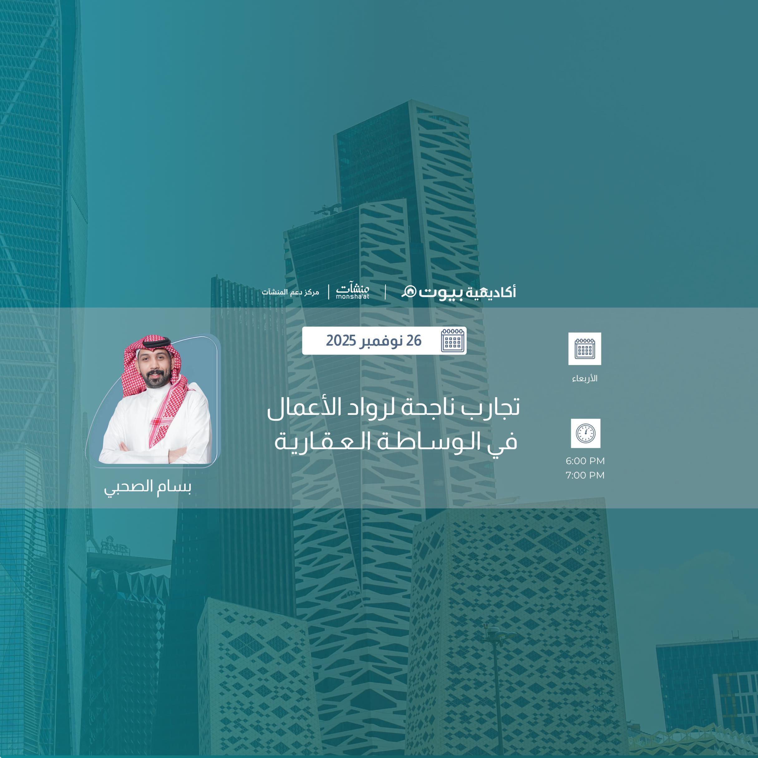 - تهدف الورشة، ضمن برامج أكاديمية بيوت وبالتعاون مع مراكز دعم المنشآت "منشآت"، إلى تسليط الضوء على تجارب ناجحة لرواد الأعمال في الوساطة العقارية، حيث استعرض مجموعة من الوسطاء العقاريين ورواد الأعمال قصص نجاحهم وخبراتهم العملية في بناء مشاريع عقارية مزدهرة، ملهمين الحضور بأفكار واستراتيجيات تطوير أعمالهم في السوق العقاري.