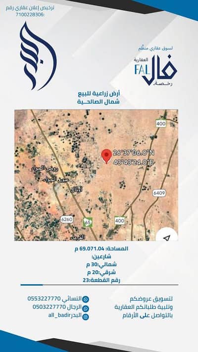 Awthal Al Qassim Region PropertiesResidential LandArea:69,071 Sq. M.