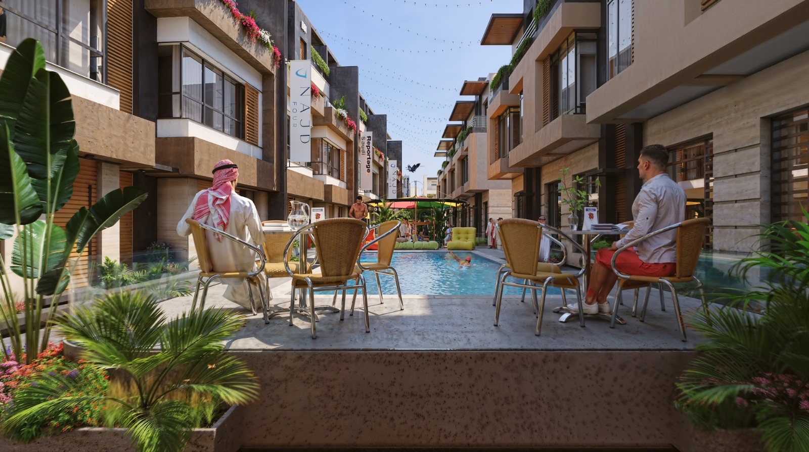 Spacious 2-bedroom duplex located in Najd 4, a premium gated residential resort in Al Rimal, Riyadh.