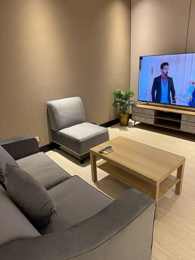 Large new fully furnished apartment with a 70-inch display screen, all global channels working, as well as sports channels and Shahid.