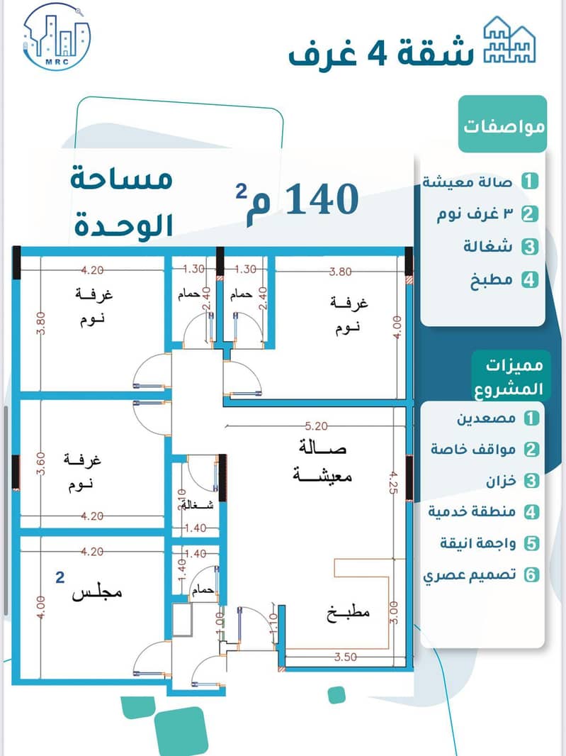 4 bedroom apartment for sale under construction on Mohamed Bin Ahmed Al-Farsi Street, Al Nozha, Jeddah