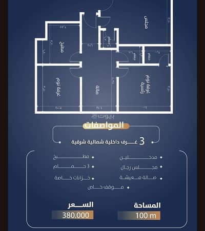 Al Safa neighborhood - Jeddah Specifications 3 rooms 2 entrances Balcony Kitchen 3 bathrooms Living room Private parking Independent closets Area 100m