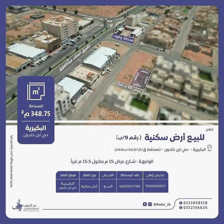 The location is fetched and verified by REGALocation Description as per Deed:قطعة الأرض السكنية رقم 9 / ب من المخطط رقم ق / ك/ 653/ ت549 الواقع غرب محافظة البكيرية .