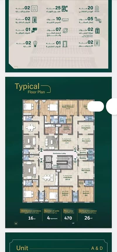 - Description ممرات و مصعد 1 و الوحدة رقم 1 / 1
