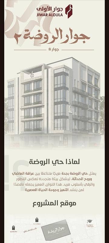 !! We present to you the *Jawar Al-Rawda 2* project located in one of the most prestigious neighborhoods in Jeddah – Al-Rawda neighborhood, where modern planning meets strategic location.