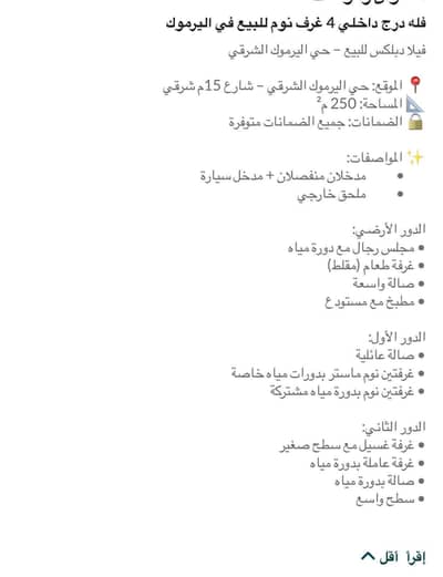 Duplex Villa for Sale - Al-Yarmouk Al-Sharqi Neighborhood