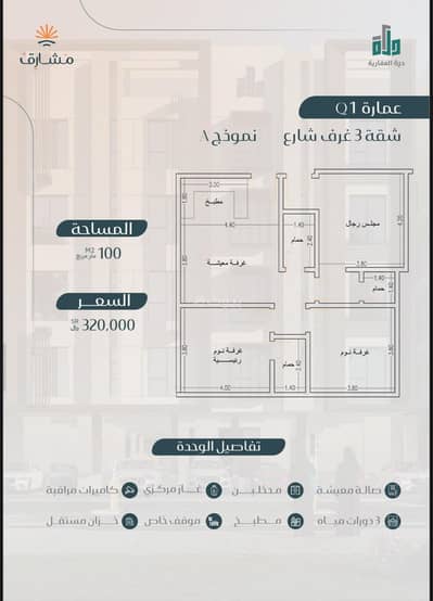 • 2-bedroom apartments (front and interior view) starting from 250,000 SAR