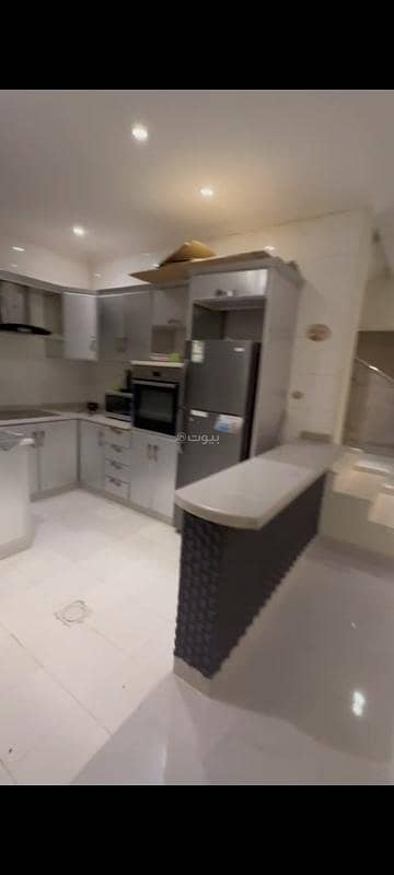 For rent, a two-story apartment in Al Yasmeen neighborhood in a very excellent location. The ground floor consists of: a living room, a kitchen (with refrigerator and microwave), 2 storages, and a bathroom. Upstairs: three bedrooms, including a master bedroom with two bathrooms, a fitted kitchen, and installed air conditioners. The rent is 60,000 annually.