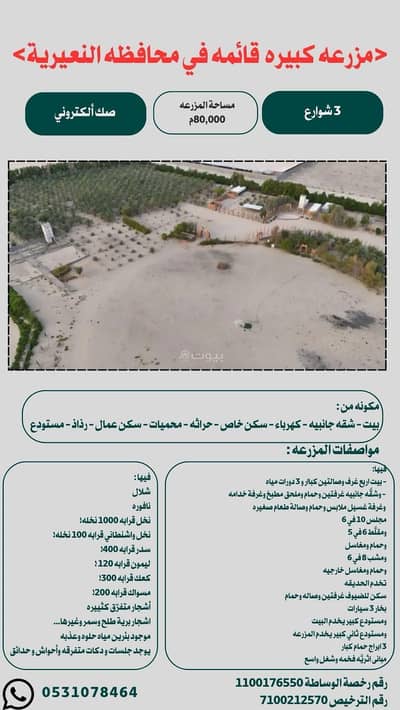 Discover an exceptional investment opportunity with this expansive farm situated in the tranquil area of Al Falah, Mulayjah. Spanning over 100,786 square meters, this farm provides ample space for agricultural pursuits or future development.