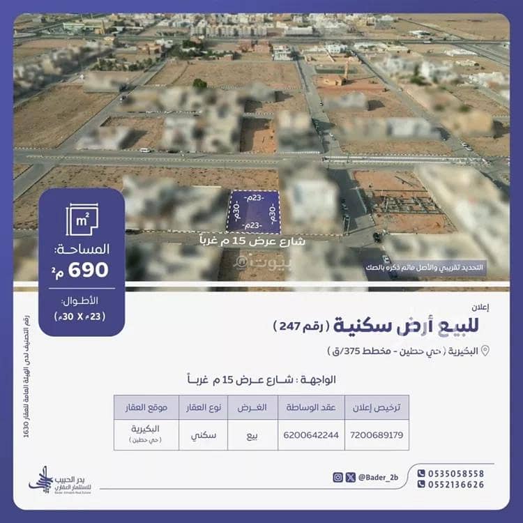 The location is fetched and verified by REGALocation Description as per Deed:قطعة الأرض السكنية رقم 247 من المخطط رقم 375 / ق الواقع فى حى حطين محافظة البكيرية .