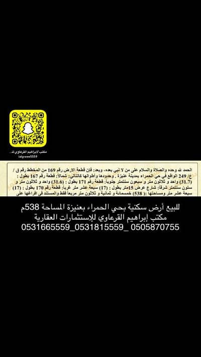 For sale residential land in Al Hamra neighborhood in Unaizah