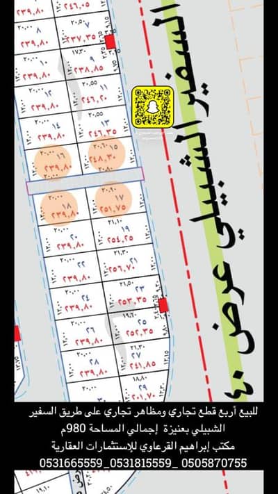 For sale: 4 commercial land plots and commercial appearances in Al-Manar neighborhood in Unayzah.