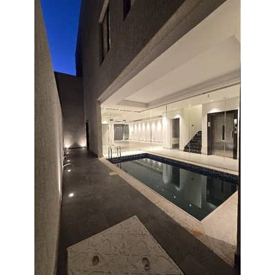 Ground floor: guard room + garage + spacious backyard + men's living room + kitchen + very large hall + indoor glass-enclosed swimming pool + store room