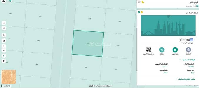 For real estate communication, contact Al-Hadriti: 0551299975. Your golden opportunity in North Riyadh to sell residential land in Al-Khayr neighborhood – Al-Atibba plan (3483), one of the most prominent and in-demand modern neighborhoods, with an area of 387.5 m² (12.5 m × 31 m) and a western front on a 20 m street. Strategic location: direct proximity to King Khalid Road. Easy access to King Khalid International Airport and the heart of the capital. Within the range of developmental projects for Vision 2030, which enhances its investment value. Features of the land: Ideal dimensions for building a modern residential villa. A calm and upscale neighborhood suitable for families. Basic services available (electricity) with ongoing infrastructure works. A modern electronic deed ensures quick and easy procedures. A guaranteed investment and a rare opportunity to own land in a neighborhood experiencing rapid growth and continuous price increases.