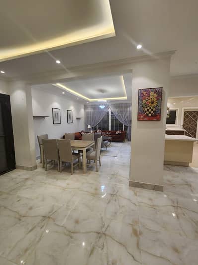 Majlis with bathroom, dining hall, two open lounges with bathroom, kitchen, external storage, back yard 5 meters