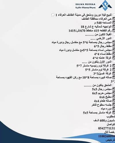 Don't miss this chance to own a villa in one of Taif's desirable locations. Reach out today for more information or to schedule a viewing. Your new home awaits!