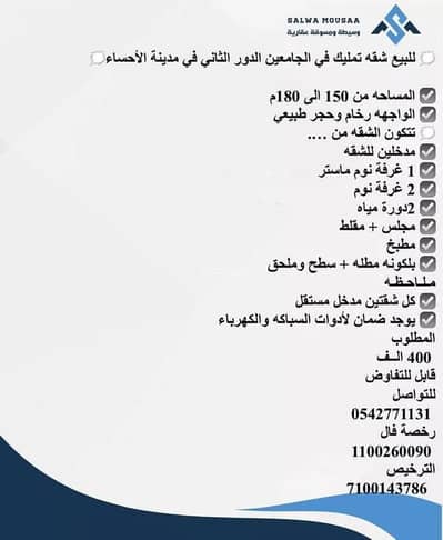This studio apartment presents a unique opportunity for those seeking a new home or investment in Al Jameyeen, Al Hofuf Eastern Region. With a competitive price of 400,000, this property is perfect for first-time buyers or those looking to expand their real estate portfolio.