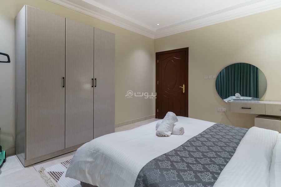 Apartment with two bedrooms, two bathrooms, a living room, and a kitchen for monthly rent of 6500 Riyals, including water, electricity, and internet. The location is close to the metro station. Complete privacy. Soundproof. Smart lock.
