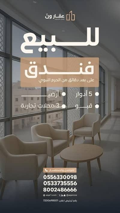 For sale: A fully operational and leased hotel located on Prince Abdulmajid bin Abdulaziz Road, featuring a modern design consisting of five floors, 58 rooms, and three rented retail shops, providing stable and rewarding returns throughout the year. It combines comfort, luxury, and an ideal location near the Haram and the central area.