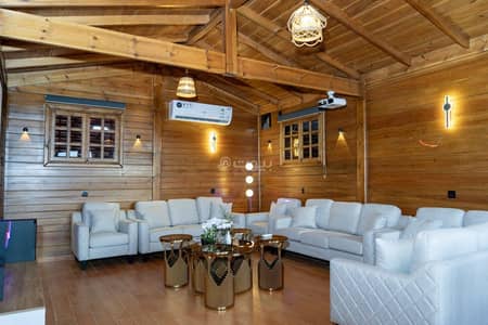 A luxurious chalet in Al -Naeem neighborhood near the history roundabout inside the country is a fully wooden hut with a special pool (Roof with a building) and consists of: