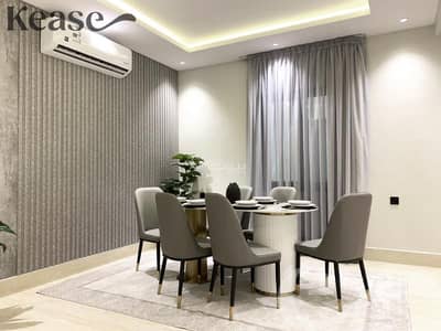 A fully furnished apartment with luxurious modern design, located on the ground floor, offering an upscale living experience that combines luxury and comfort in a prime location in northern Riyadh.