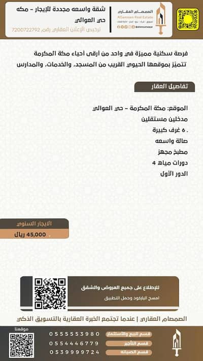 This apartment is perfect for those seeking a balance between comfort and accessibility. Don't miss this opportunity to rent a well-located property in Makkah. Contact us today to schedule a viewing or for more information about this fantastic rental opportunity.