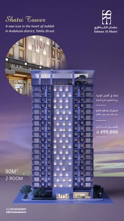 Unit prices in Al Shatari Tower from floor 1 to floor 4 are 499,000, from floor 5 to floor 8 are 555,000, and the upper floors, ninth and tenth, are 666,000 riyals.
