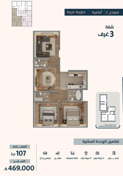(3 Bedrooms + Majlis + Dining Room + Open Lounge)