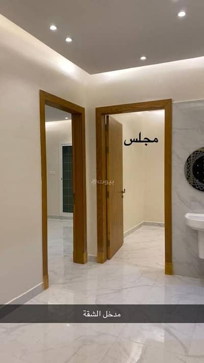 Peace be upon you. For rent, an apartment in Al-Narjis neighborhood. It is on the second floor and consists of two bedrooms, a living room, a council, a built-in kitchen, installed air conditioners, and two bathrooms. The rent price is 50,000, paid in two installments.