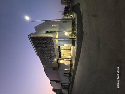 Men’s majlis with bathroom, women’s majlis with bathroom + kitchen + maid’s room with bathroom + swimming pool + elevator + ducted air conditioning.